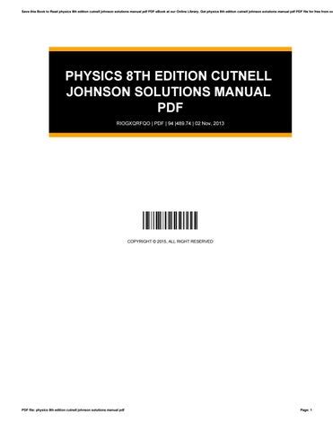 Download cutnell and johnson 8th edition solution manual Reader online is a convenient and frugal way to read cutnell and johnson 8th edition solution manual you love right from the comfort of your own home. Yes, there sites where you can get Reader "for free" but the ones listed below are clean from viruses and completely legal to use.